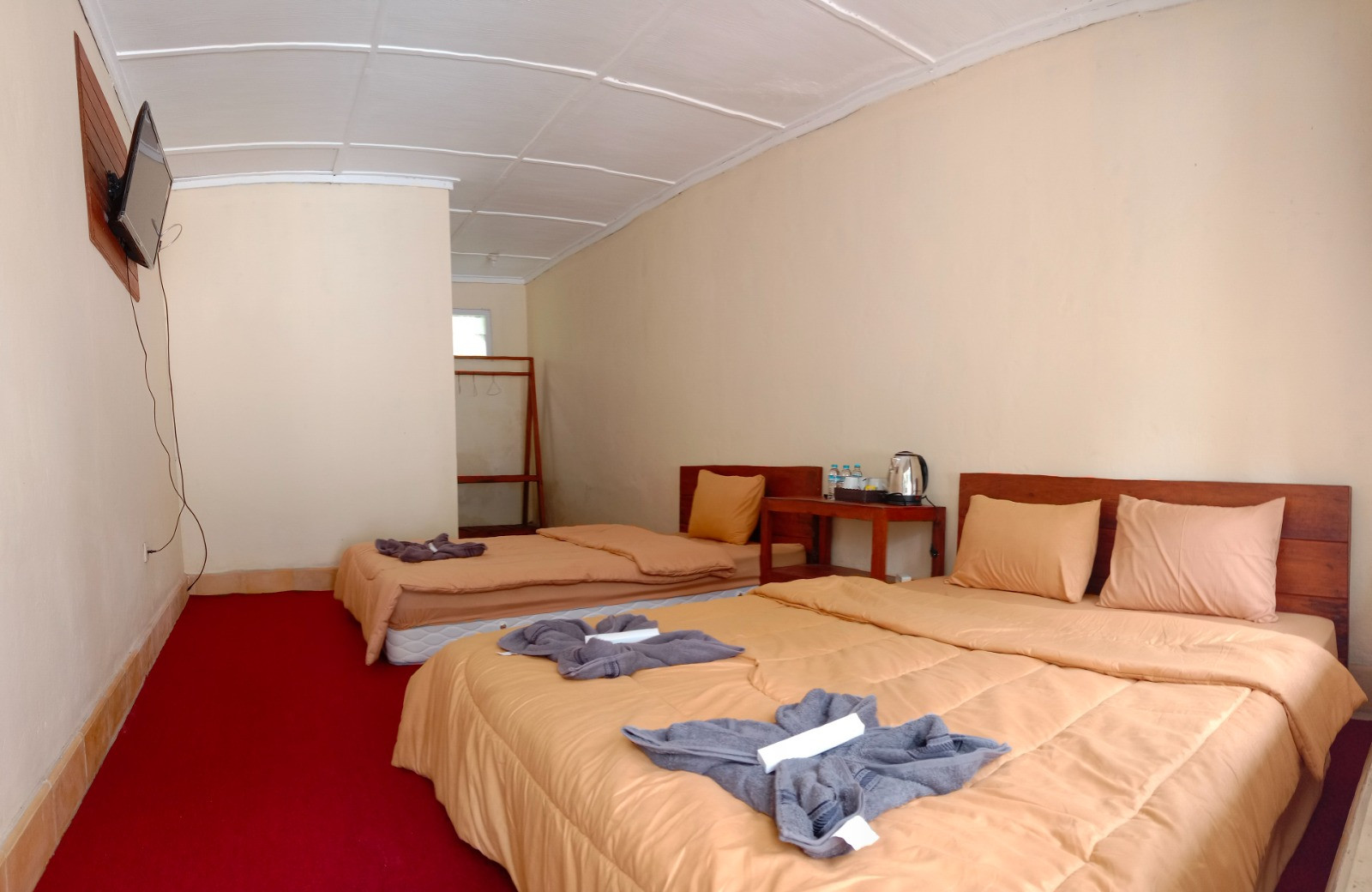 Penginapan berkonsep cottage ini memiliki kapasitas untuk 3 orang. Desain eksterior tipe cottage menarik dan instagramable. Penginapan tipe cottage 3 memiliki kasur tipe queen bed dan 1 double bed lengkap dengan fasilitas lainnya seperti kamar mandi dengan water heater, toiletries, televisi, dan ketel listrik. Penginapan tipe ini cocok untuk Anda yang ingin menghabiskan waktu bersama teman dan keluarga. Pemesanan penginapan tipe ini sudah termasuk sarapan gratis dan tiket masuk Tawangmangu Wonder Park untuk 3 orang. Untuk fasilitas tambahan bisa menghubungi