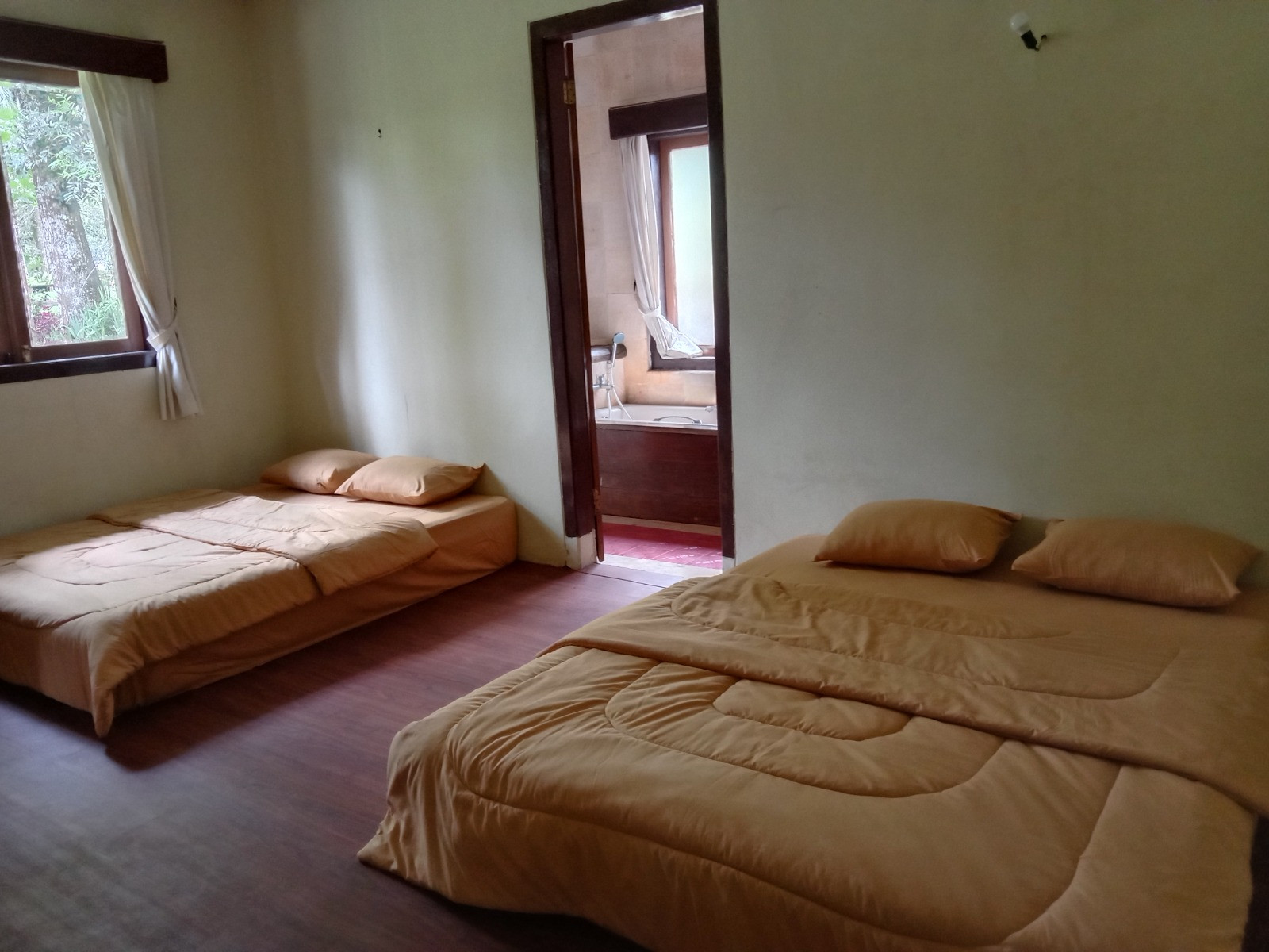 Penginapan berkonsep cottage ini memiliki kapasitas maksimal untuk 3 orang. Desain eksterior tipe cottage menarik dan instagramable.