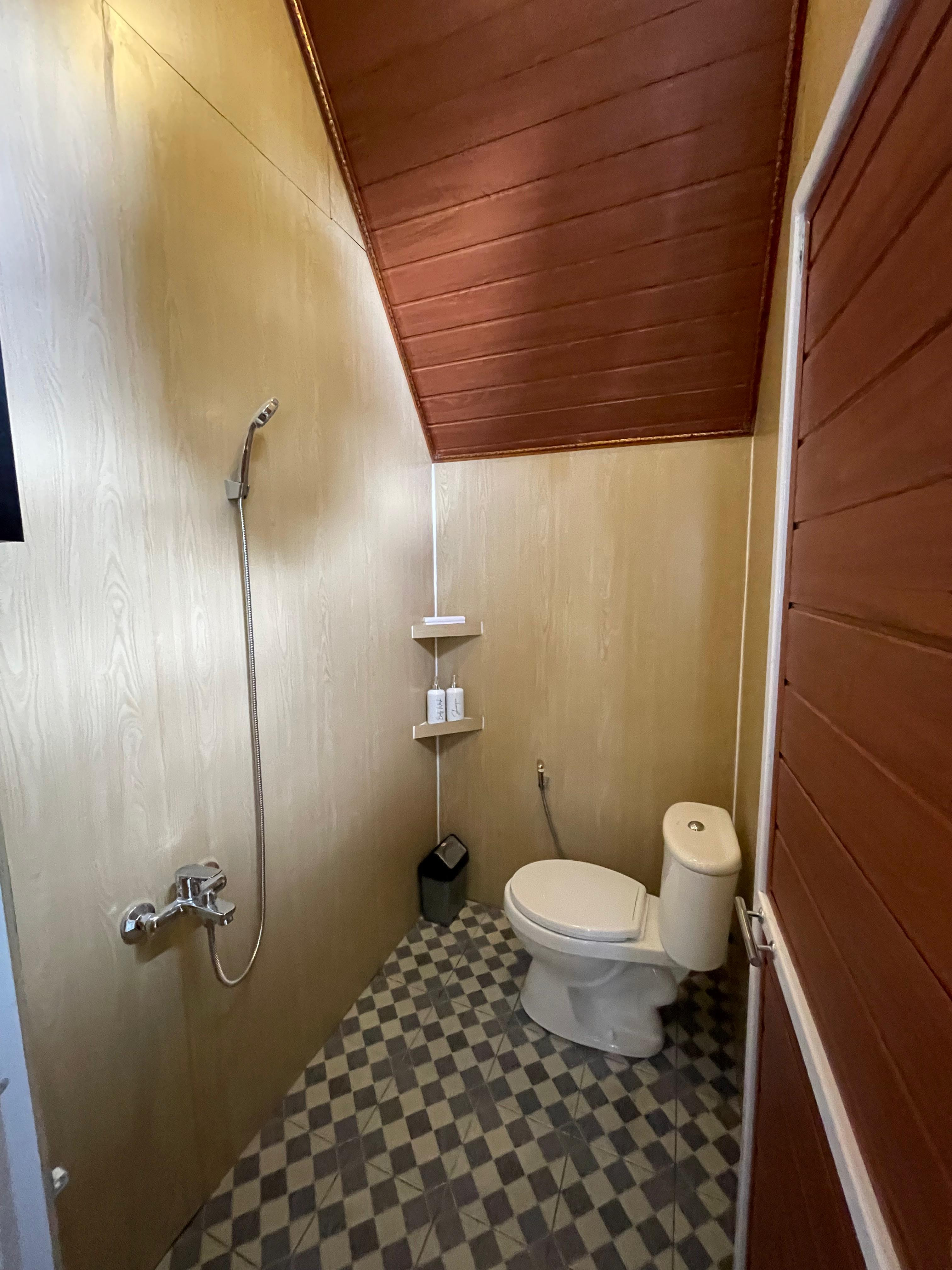 Penginapan berkonsep cottage ini memiliki kapasitas maksimal untuk 3 orang. Desain eksterior tipe cottage menarik dan instagramable.