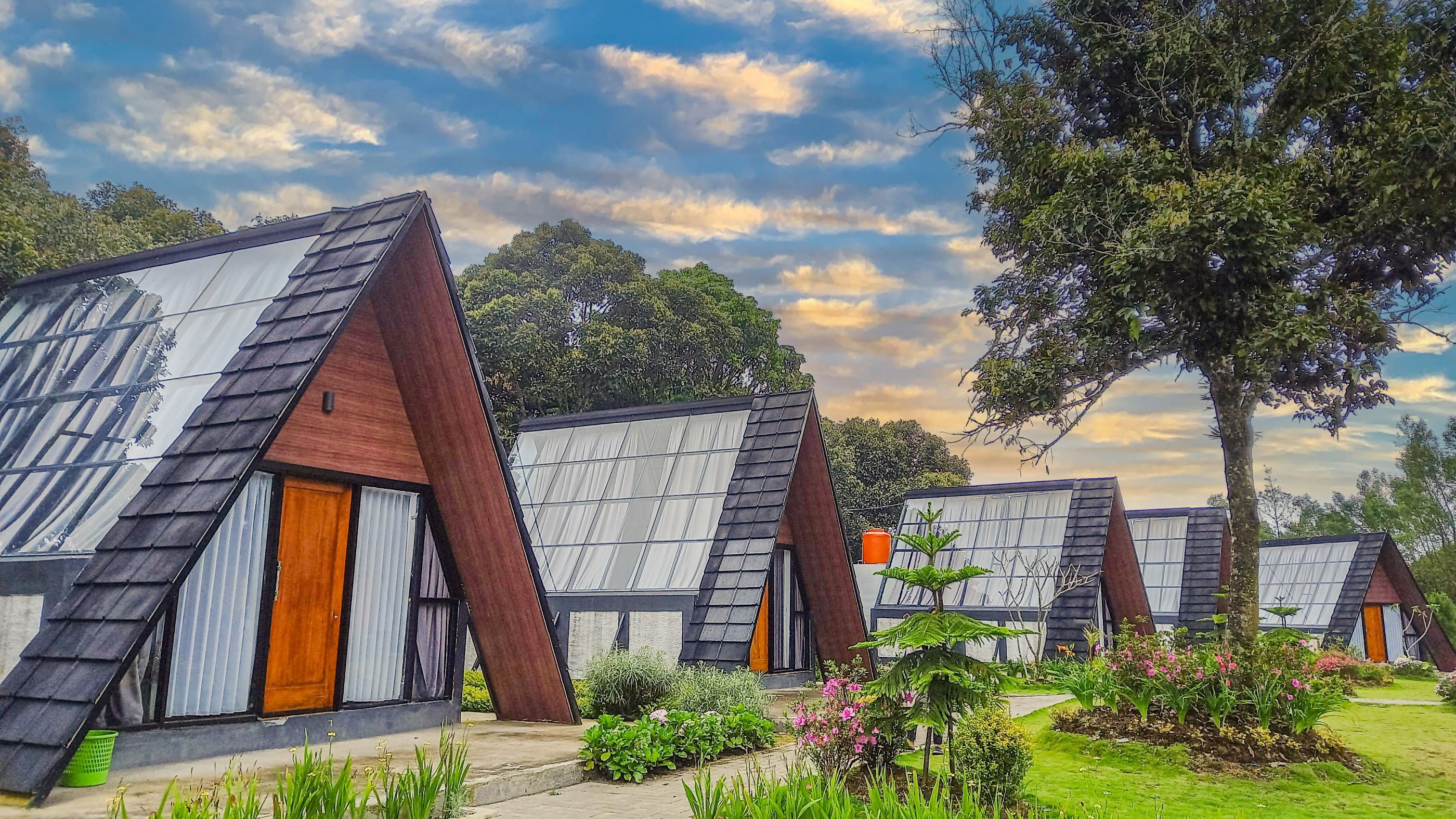 Penginapan di Sakura Hills dengan atap terbuat dari kaca. Menyajikan pemandangan istimewa dan suasana asri, nyaman, dan tak terlupakan.